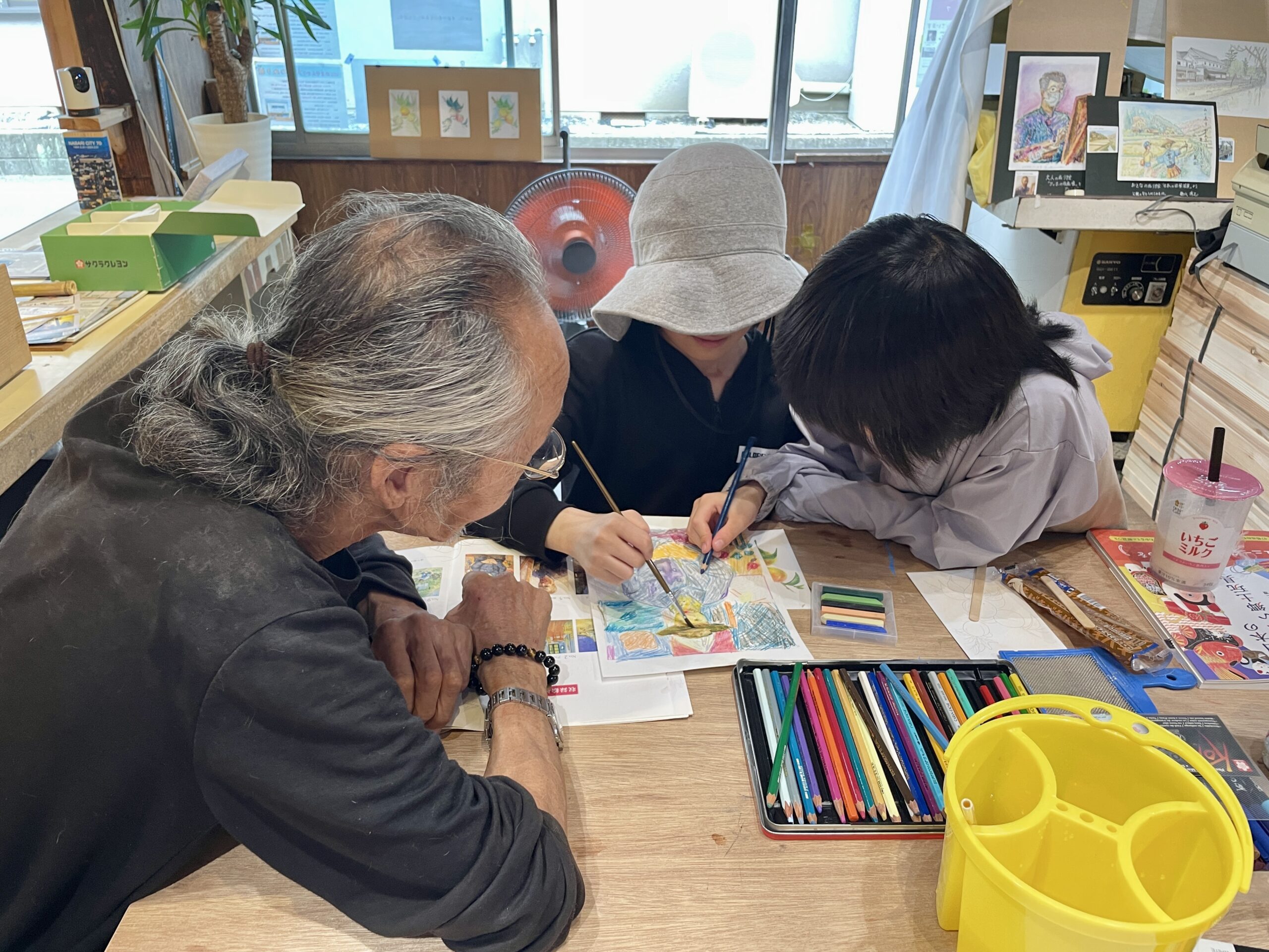 たくさんの画材が準備されているので、手ぶらでお気軽に遊びに来てください。