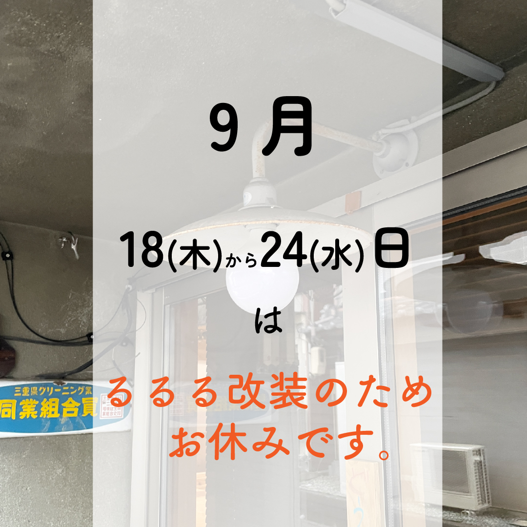 お知らせ 【お休みのお知らせ】9月18日(木)から24日(水)は、るるる改装のためお休みです 。 お知らせ 2025.09.15 2025年9月18日(木)から24日(水)は、るるる改装のためお休みです 。